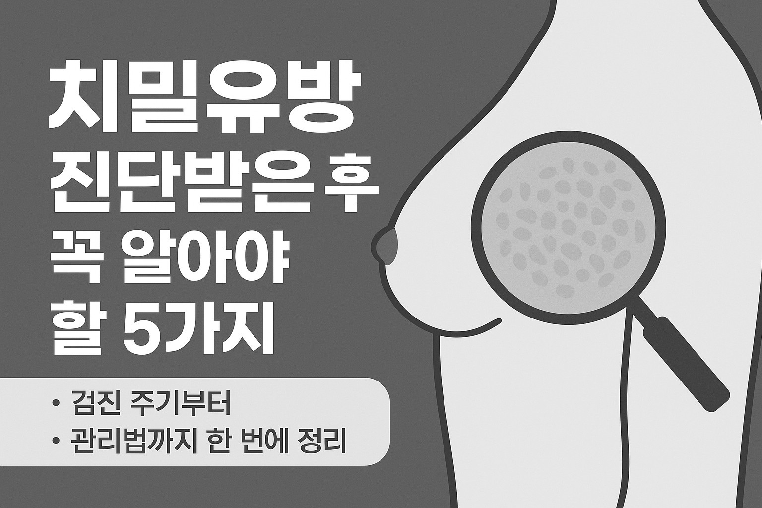 🩺검진 주기부터 관리 방법까지 한 번에 정리유방촬영(맘모그래피)을 받고 “치밀 유방”이라는 말을 들으면 처음에는 걱정부터 앞서게 되죠.하지만 치밀유방은 질환이 아니며, 한국 여성에게 매우 흔하게 나타나는 특징입니다.다만 유방암 검진에서 조기 발견이 어려울 수 있다는 점 때문에 정확한 정보와 관리법을 알고 있는 것이 중요합니다.오늘은 치밀유방 진단 후 꼭 알아야 할 5가지 필수 체크 포인트를 정리해드릴게요. 1. 치밀 유방은 ‘질환’이 아니라 구조적 특성입니다치밀유방은 유방 내부의 지방보다 유선 조직이 더 많아서 유방 촬영 사진에 하얗게 보이는 상태를 말합니다.한국 여성의 40~50대는 약 70% 이상이 치밀유방나이가 들수록 지방 조직이 증가하며 치밀도는 자연스럽게 감소유전·체형·호르몬 영향이 큼➡️ ..