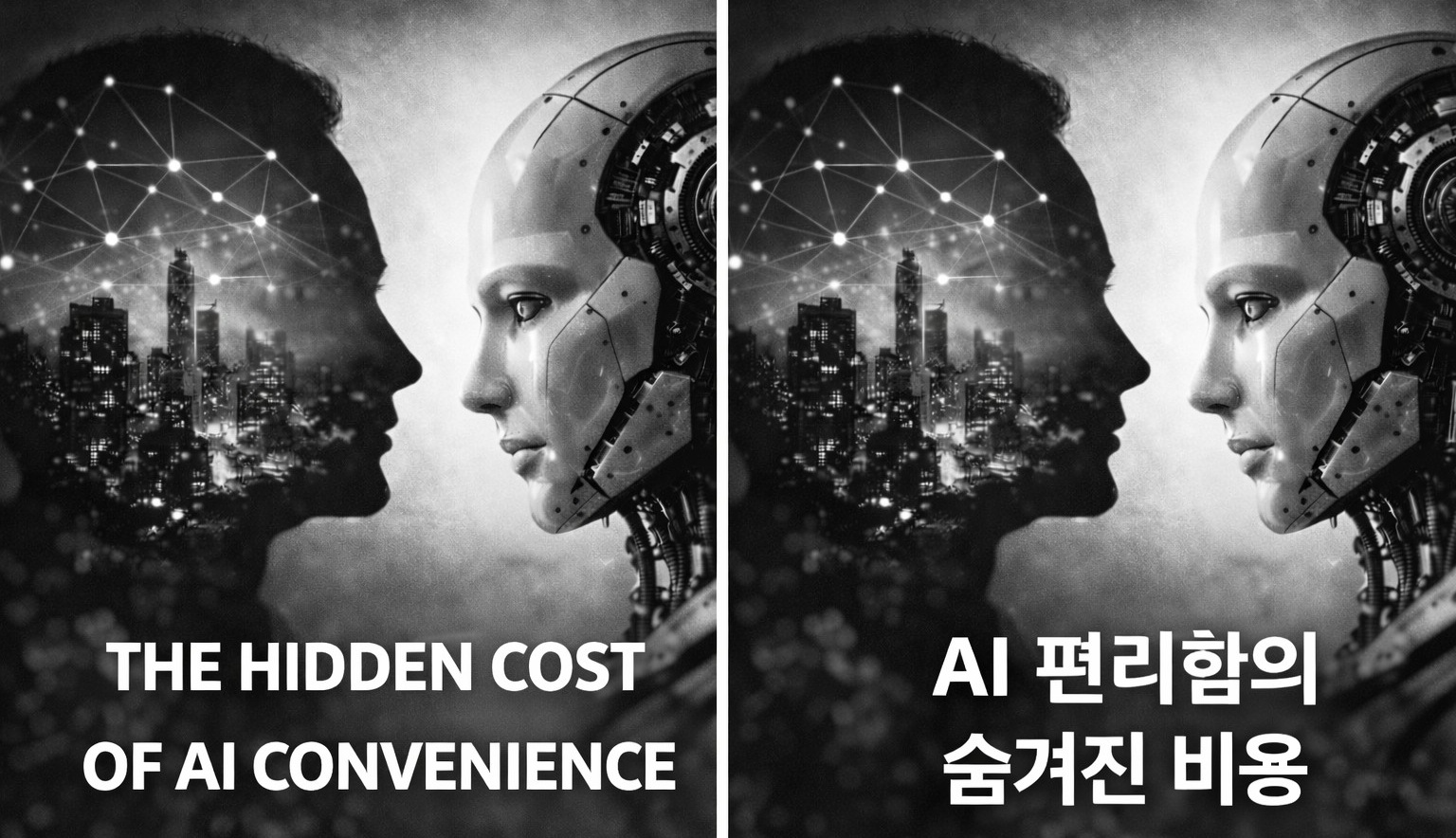 AI는 우리의 삶을 놀라울 만큼 편리하게 만들었습니다.이메일은 몇 초 만에 작성되고보고서는 자동으로 요약되며이미지는 클릭 한 번으로 완성됩니다시간은 줄고, 효율은 올라갑니다.겉으로 보면 단점이 없어 보입니다.하지만 한 가지 질문을 던져볼 필요가 있습니다.이 편리함의 대가는 무엇일까요?기술은 언제나 무언가를 얻는 대신, 무언가를 내어주게 합니다.AI 역시 예외가 아닙니다. 1. 생각하는 힘의 비용AI는 ‘마찰’을 줄여줍니다.고민하는 시간, 조사하는 과정, 정리하는 수고를 대신해 줍니다.문제는 여기 있습니다.사람의 사고력은 ‘편리함’이 아니라 ‘과정’ 속에서 성장합니다.직접 조사하고구조를 고민하고문장을 다듬는 과정이 과정을 건너뛰면 결과는 빠르게 얻을 수 있지만, 사고력은 서서히 약해질 수 있습니다.편리함..
